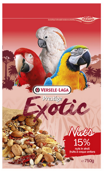 Alle gegevens bekijkenVersele-Laga Prestige Premium Exotic Nuts Papegaai (750g en 15kg) Versele-Laga Exotic Nuts Papegaai, een lekkernij waar papegaaien dol op zijn. Ze ...