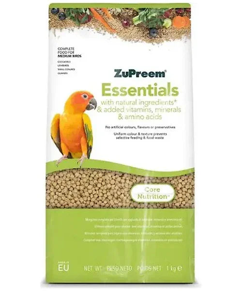 ZuPreem Essentials met toegevoegde vitaminen, mineralen en aminozuren is een complete dagelijkse voeding voor gezelschapsvogels en biedt een gezonde en heerlijke voeding voor het dagelijks voeren.