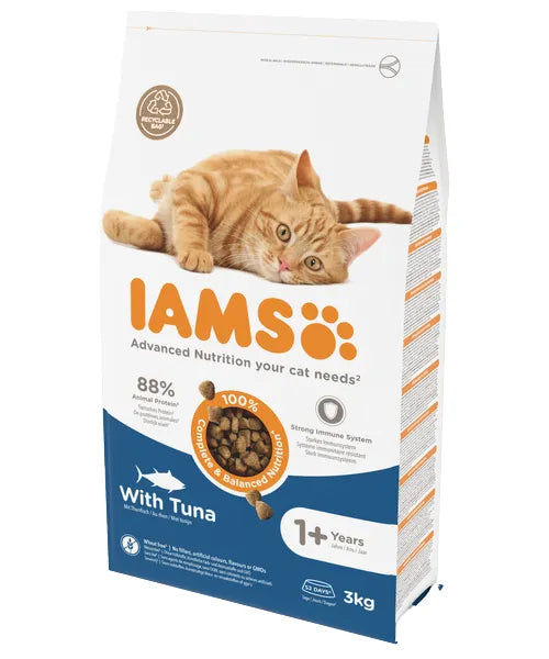Gracias al equilibrio de omega 3 y 6 de Iams Adult Salmon, tu gato brillará con una piel sana y un pelaje brillante. Este alimento brinda apoyo al tracto urinario de su gato con nuestras recetas especialmente formuladas que reducen el pH de la orina. Su gato trepará y saltará a sus anchas gracias a las proteínas de alta calidad y al contenido de minerales esenciales que apoyan músculos fuertes y articulaciones saludables. La mezcla de antioxidantes con vitamina E apoya el sistema inmunológico para que tu gato pueda comenzar bien protegido su próxima aventura. Nuestras croquetas crujientes tienen un contenido mineral especialmente diseñado que mantiene los dientes de su gato fuertes y saludables mientras mastica. Una mezcla de fibras especialmente diseñada con prebióticos y pulpa de remolacha estimula una digestión saludable, lo que agradecerás al limpiar la caja de arena. Iams Adult Salmon también contiene nutrientes esenciales para un corazón sano, para que puedas disfrutar de tu querida mascota durante mucho tiempo.