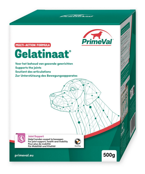 Afficher tous les détailsPrimeval Gelatinaat ® (500g en 2 kg) PrimeVal Gelatinaat® is een supplement dat bijdraagt aan soepele gewrichten bij honden. Het bevat belangrijke...